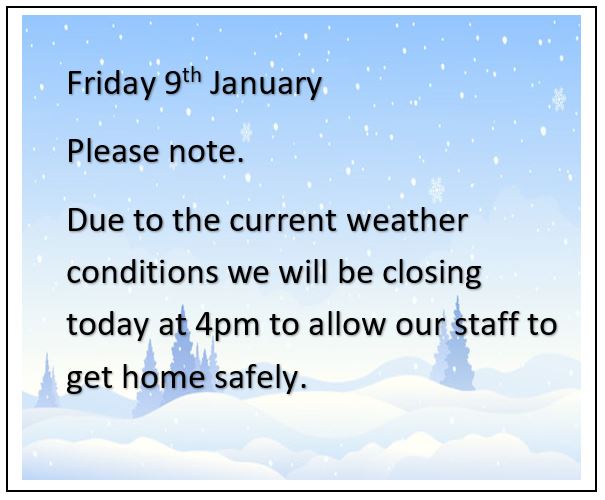 We are closed for the Bank Holiday on Monday 25th August.