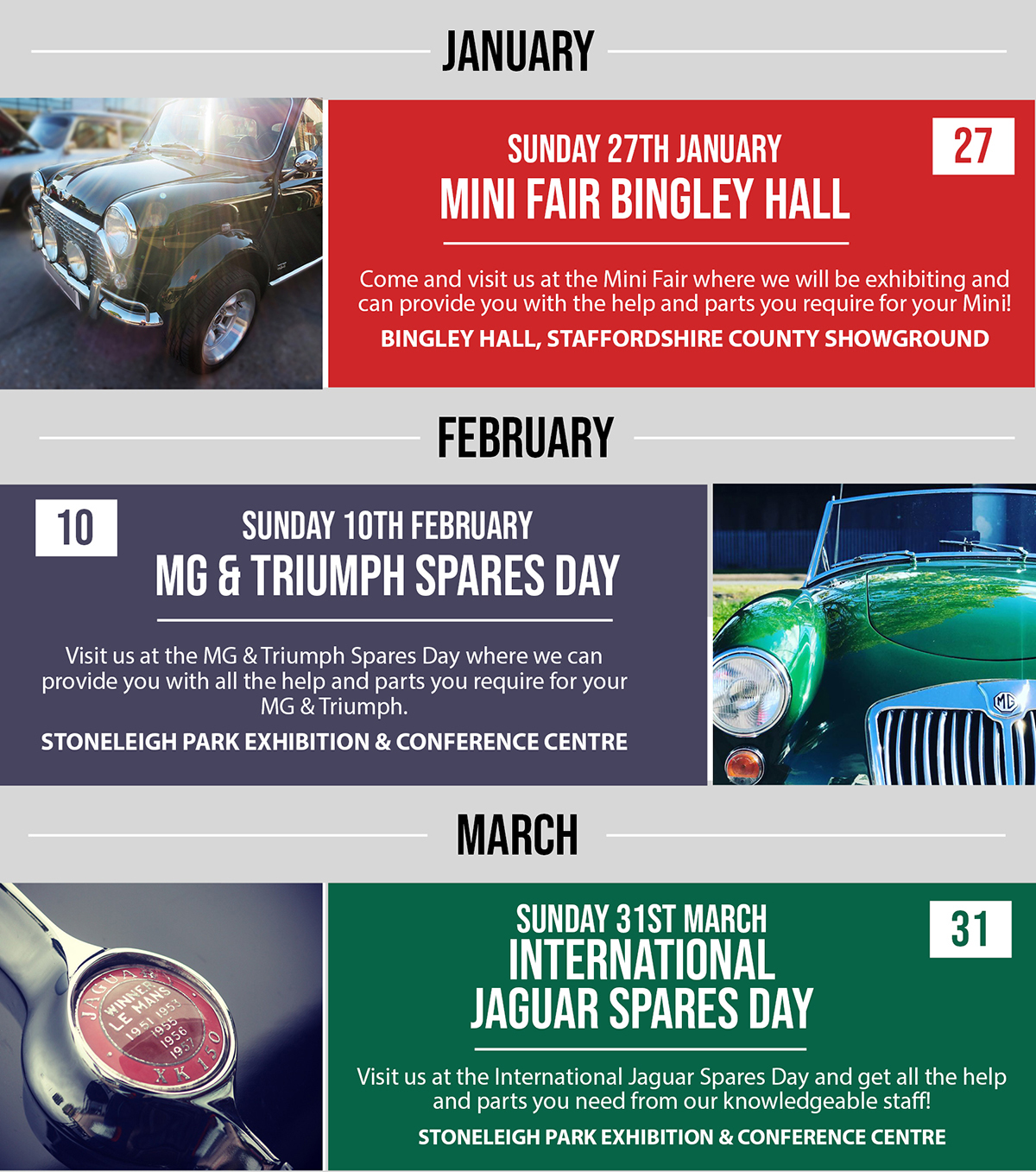 Here you will find details of the exciting events taking place during the first part of 2019. You can take advantage of exclusive event discounts, just make sure that you pre-order your parts before the event and they will then be available to collect on the day.